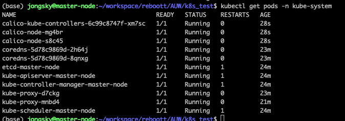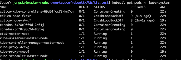 Calico 포드가 CrashLoopBackOff 상태에 있는 것은 Calico 데몬셋 또는 설정에 문제가 있음을 의미합니다. 문제가 계속 발생할 경우, Calico를 다시 설치하거나 설정 파일을 수정해야 할 수 있습니다. 다음 명령으로 Calico를 다시 설치해볼 수 있습니다:
