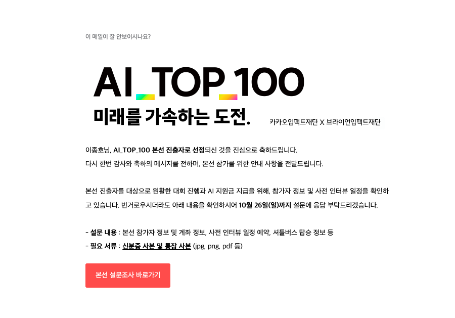 메일을 받고 본선 입상에 대한 기대보다는 "다른 사람들은 어떻게 AI를 활용할까?" "어떤 사람들이 모일까?" 하는 호기심이 더 컸고