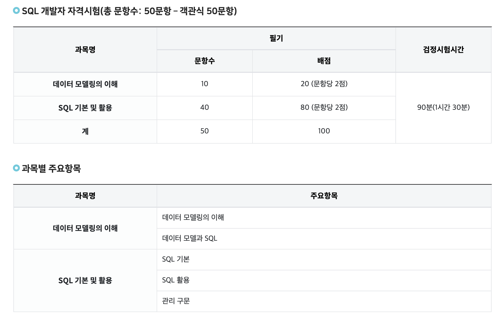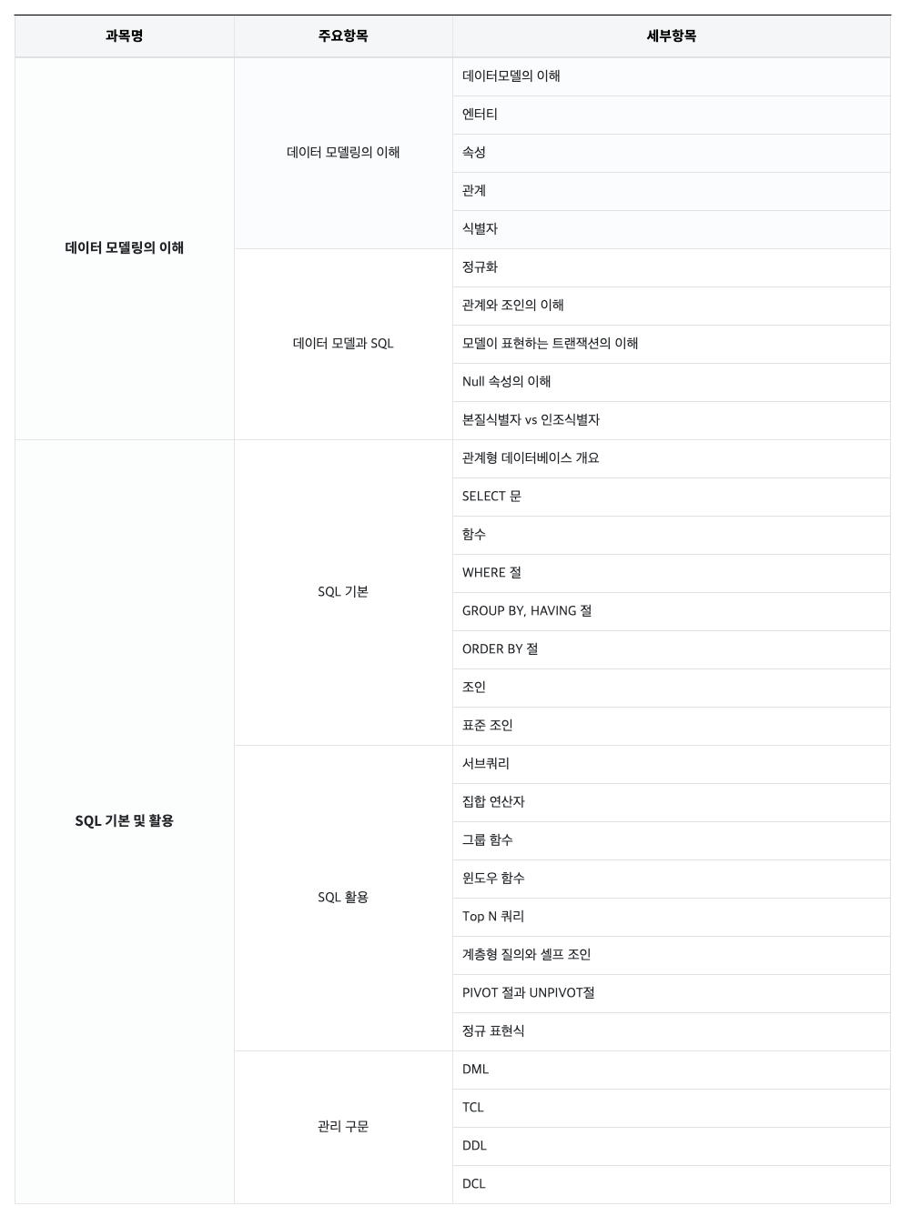 데이터베이스 기본 구조와 SQL 사용 능력을 갖춘 사람이라는 최소한의 신뢰성을 보여주는 자격증이라고 생각합니다.