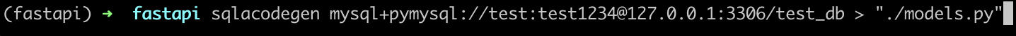 sqlacodegen mysql+pymysql://<user>:<password>@<host>:<port>/<db> > "./models.py"