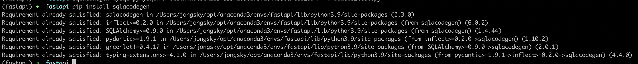 이번에는 직접 작성하는 것이 아닌 sqlacodegen를 활용해