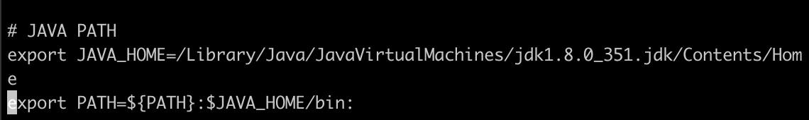 export JAVA_HOME=/Library/Java/JavaVirtualMachines/jdk1.8.0_351.jdk/Contents/Home