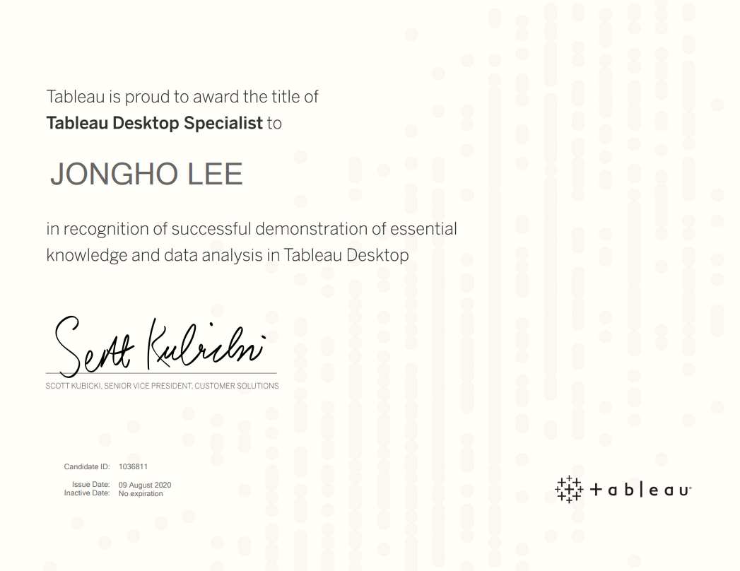 - Tableau Desktop Specialist 취득 후기