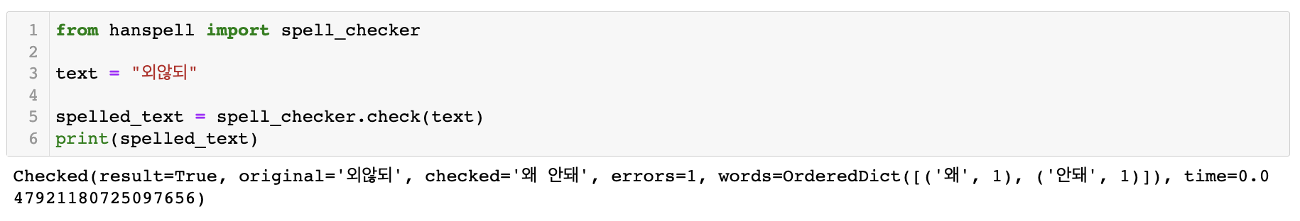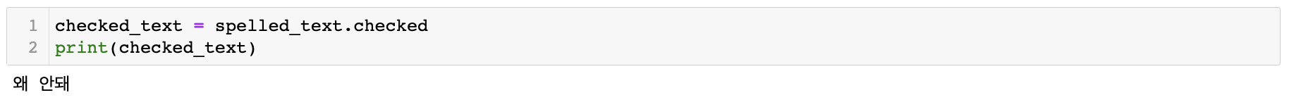 spell.checker.check("검사할문장") 을 이용하면 맞춤법을 검사해서 객체를 반환할 수 있다.