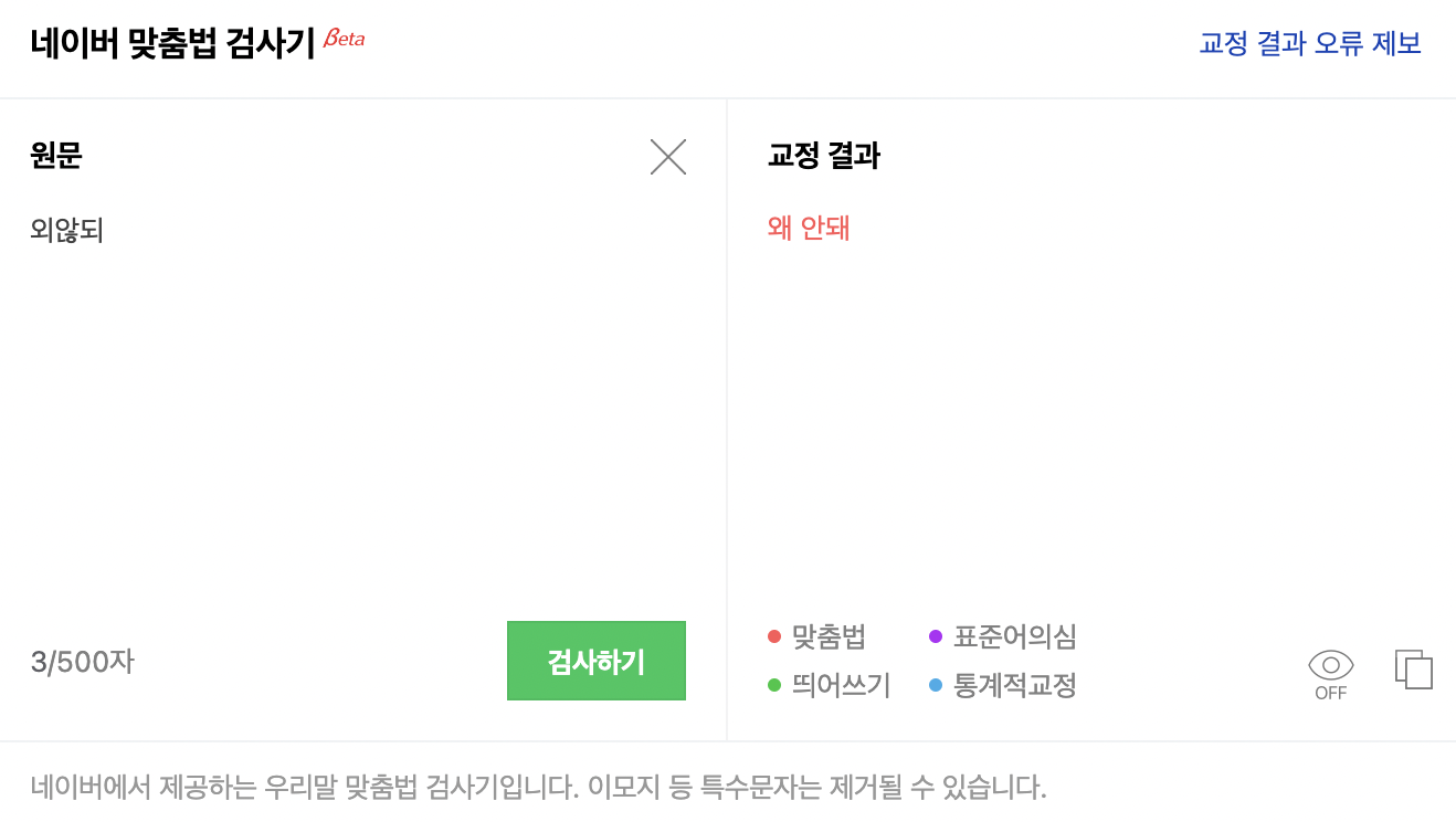 네이버 맞춤법 검사기는 최대 500자까지 검사가 가능합니다.