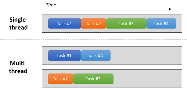 - 한 작업이 시작되더라도 다른 작업들이 기다리지 않고 계속 실행된다.
