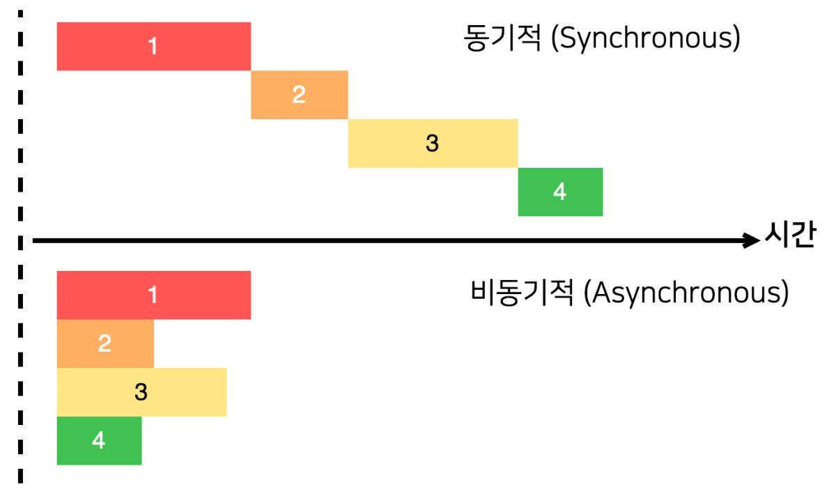 - 호출한 함수나 작업이 반환될 때까지 다음 코드로 진행하지 않는다.