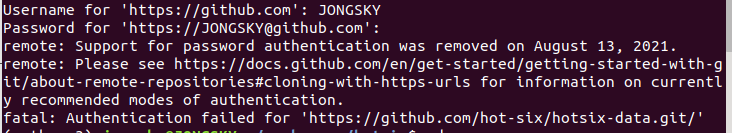 2021년 8월 13일 부로 git에서 로그인 정책이 바뀌었다고 한다..