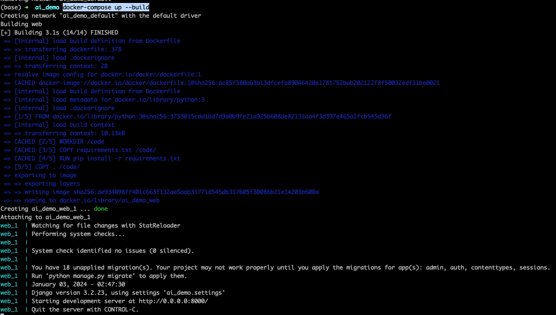 sudo docker-compose run web django-admin startproject ai_demo .