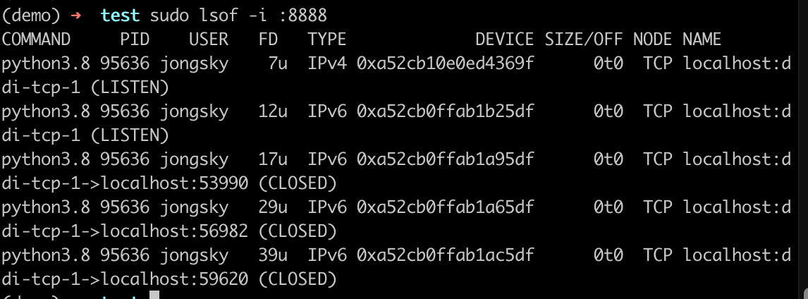 sudo lsof -i :8888