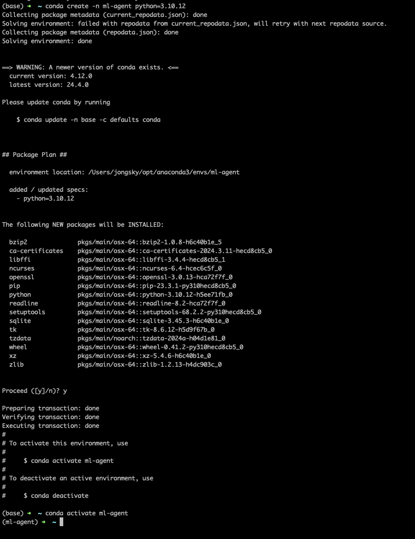 conda create -n ml-agent python=3.10.12